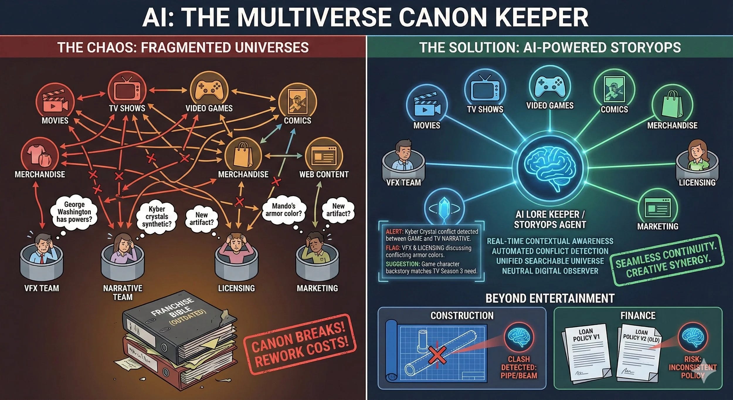 The traditional solution? Franchise bibles, lore keepers, and endless email chains with subject lines like “RE: Canon Clarification URGENT.“