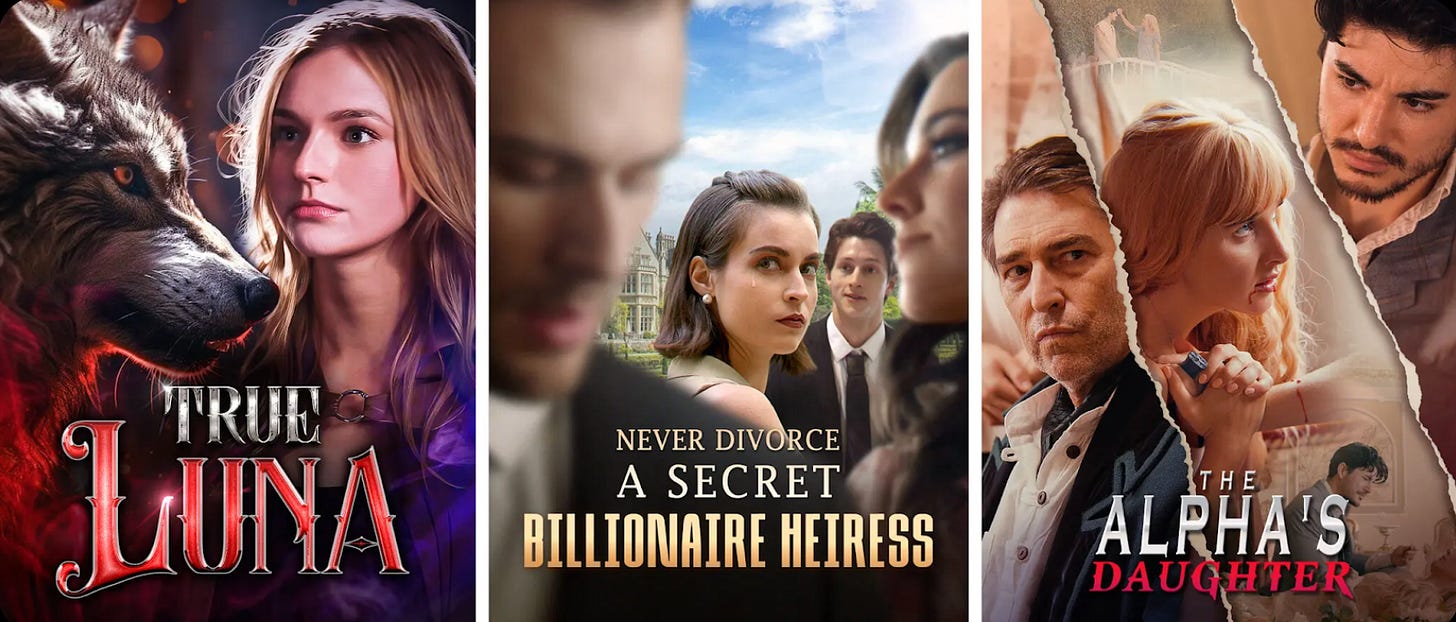 The paywall structure evokes free-to play Fortnite and VALORANT. Genius and predatory. First 10-15 episodes are free – that’s your Act One. Hook ‘em with dramatic questions and mystery before they pay. After that? You can get weird because they’re bought in. It’s like those old Dickensian serial novels and Lone Ranger serials, but turbocharged for generation TikTok.